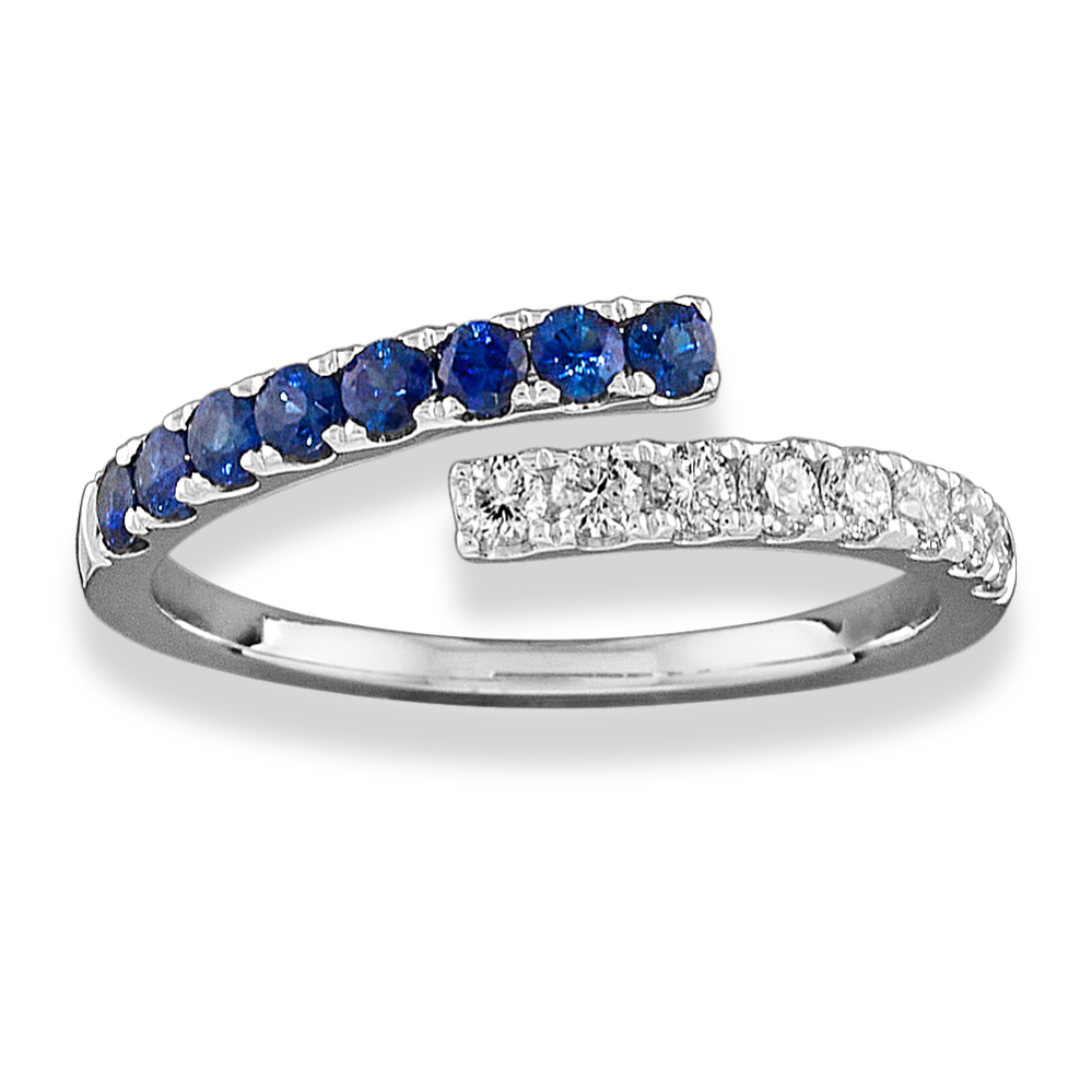 Bay Traditional Blue Sapphire and Diamond Ring in 14K White Gold Very well made.
