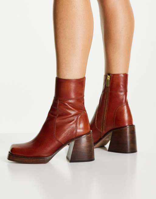 ASOS DESIGN Rhodes premium leather platform ankle boots in tan ASOS Very well made.