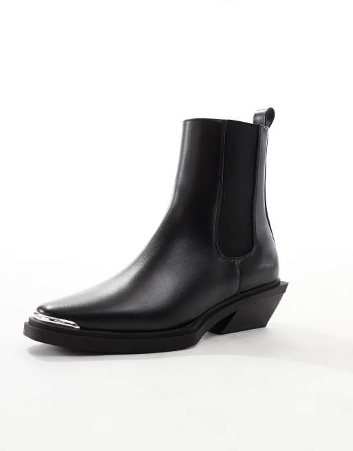 ASOS DESIGN Aruba flat western boots with toe cap detail in black Very well made.