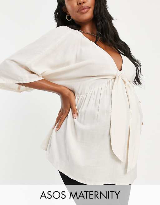 ASOS DESIGN Maternity tie front kimono top in stone Very well made.