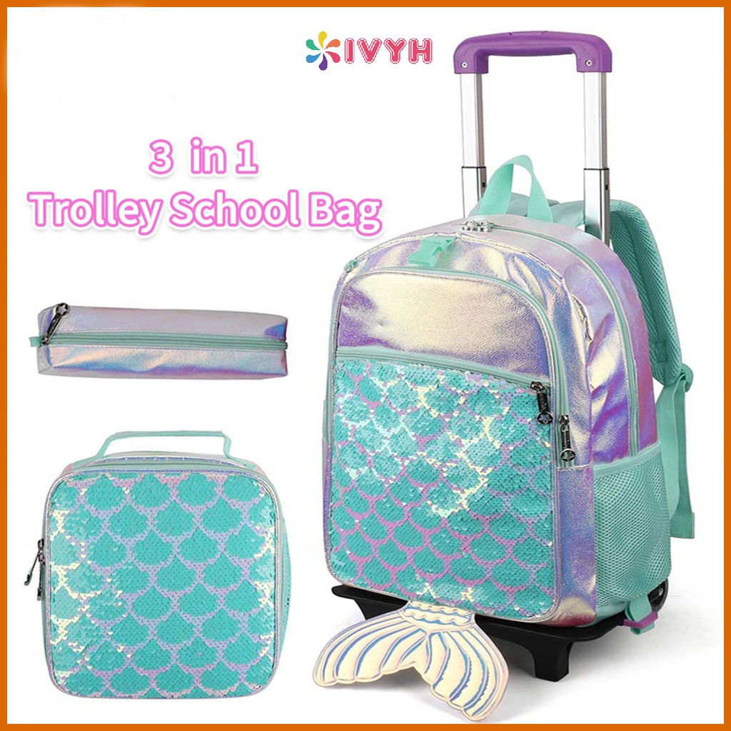 IvyH Trolley School Backpacks Rolling School Bag with Wheels Kids School Rolling Bag with Lunch Bag Pencil Case Shopee Malaysia Very well made.
