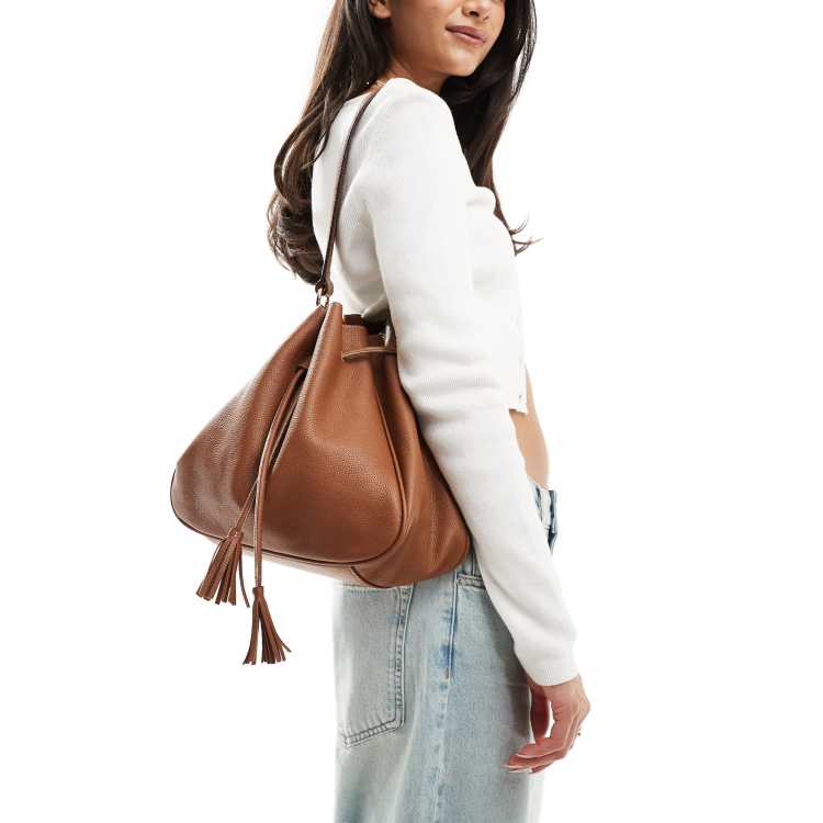 ASOS DESIGN premium leather tote bag with drawstring and tassel in tan ASOS Very well made.