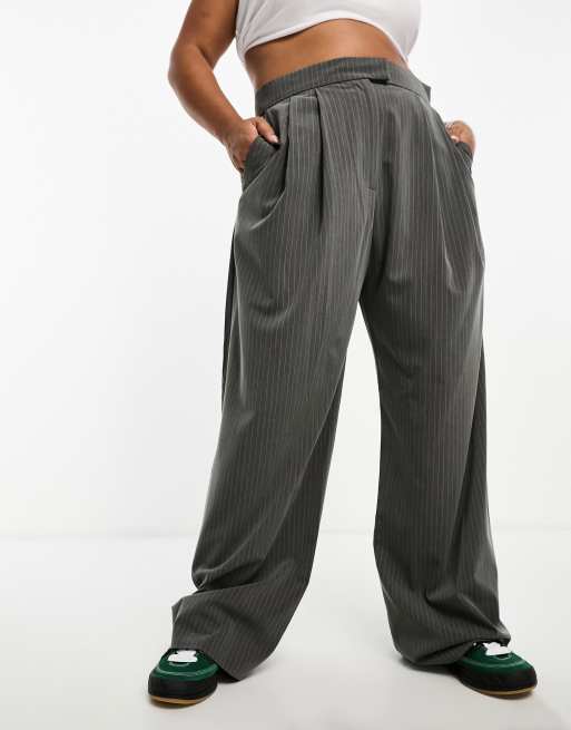 ASOS DESIGN Curve wide leg pleated striped pants in gray ASOS Very well made.