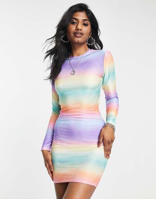 ASOS DESIGN long sleeve mini dress with exposed seams in rainbow print Very well made.