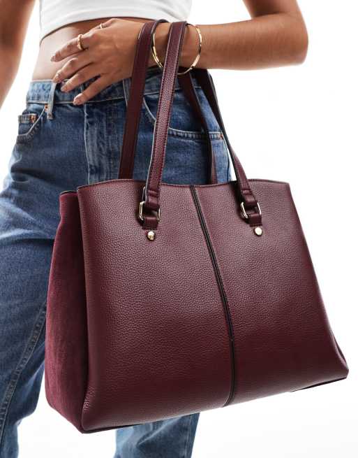 Accessorize shoulder bag with faux suede detail in burgundy red ASOS Very well made.