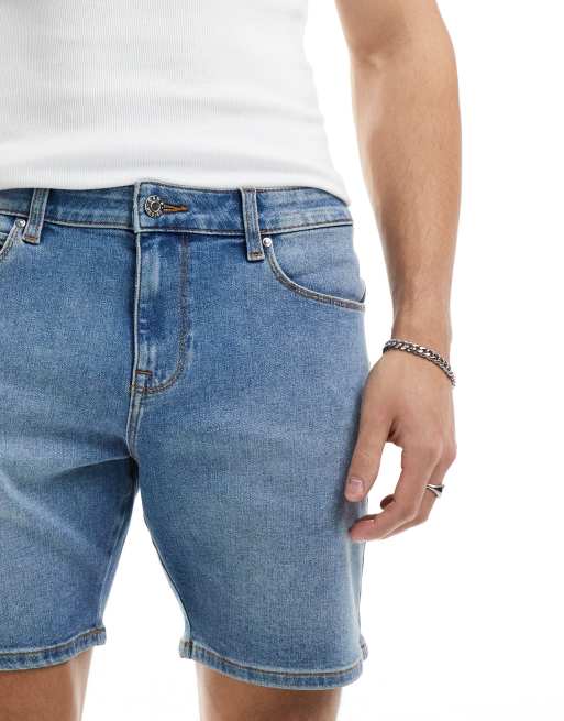 ASOS DESIGN skinny mid length denim shorts in mid wash blue Very well made.