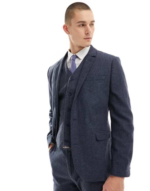 ASOS DESIGN slim suit jacket in wool mix texture in navy ASOS Very well made.