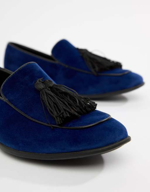 ASOS DESIGN loafers in navy velvet with tassel detail Very well made.