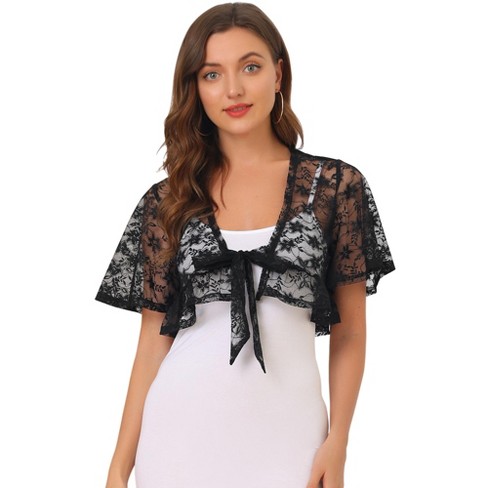 Allegra K Women s Lace Floral Tie Front Flowy Short Sleeve Cardigan Shrug Blouses Black X small Target Very well made.