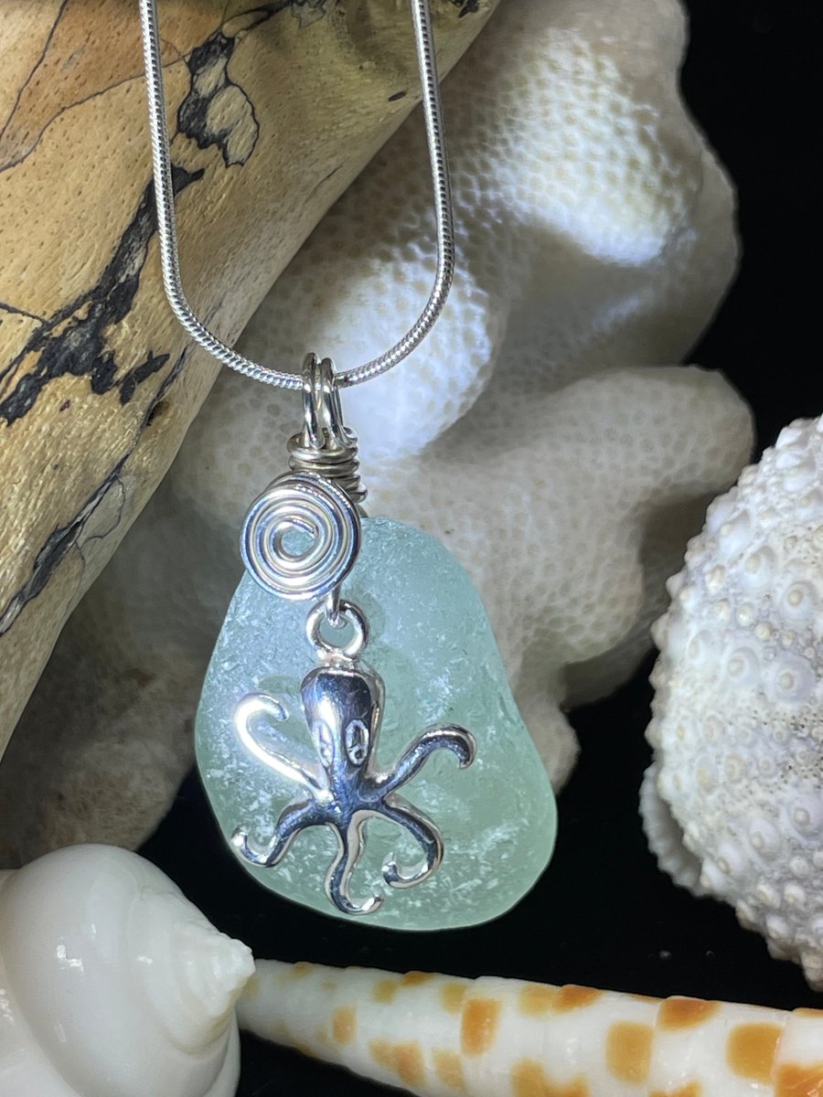 Sea Glass Sterling Silver Octopus Necklace Folksy Very well made.