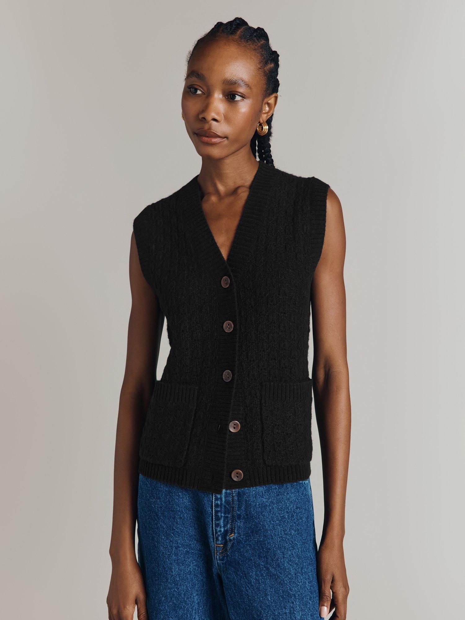 Button Through Sleeveless Cardigan Wool Brown Very well made.