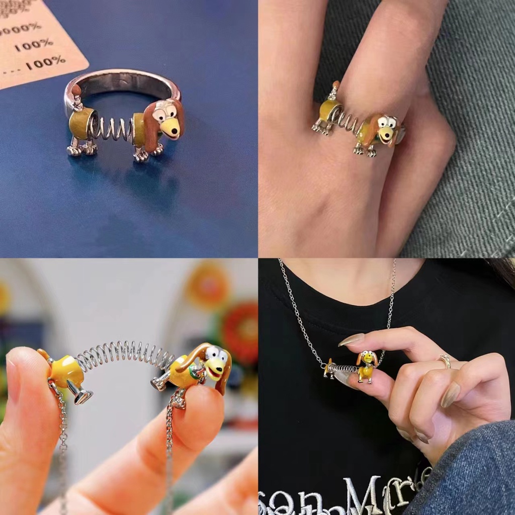 Pelicula De Dibujos Animados Toy Story Divertido Perro Metal Slinky Slinky Dog Anillo Ajustable Collar Pulsera Pareja Y Mujeres Y Ninas Y Amistad Accesorios Lindos Para Regalos De Joyeria De Fiesta Very well made.