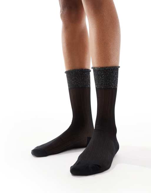 ASOS DESIGN metallic top edge fine ankle sock in black ASOS Very well made.