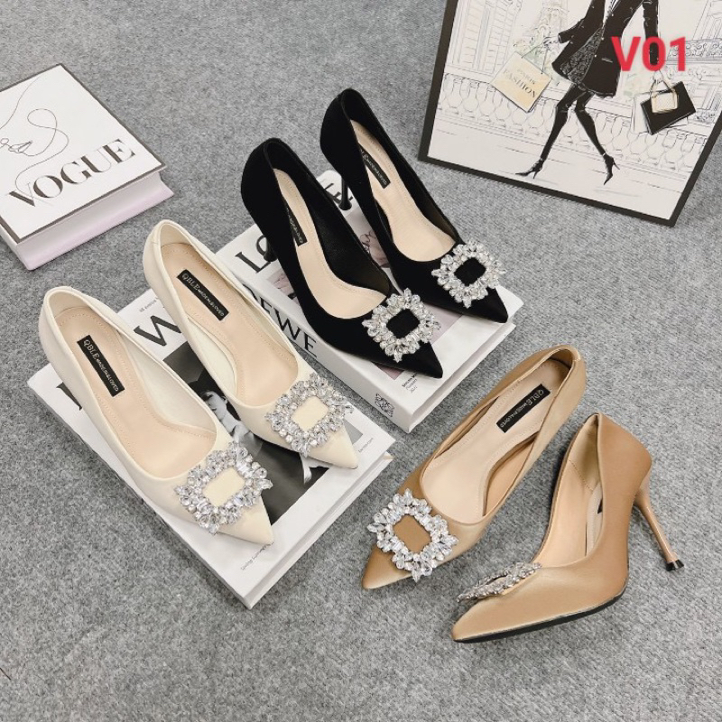 Closed high heels with sparkling square stones and soft velvet stiletto heels 8 minutes Giayxinhxinh.store Shopee Singapore Very well made.