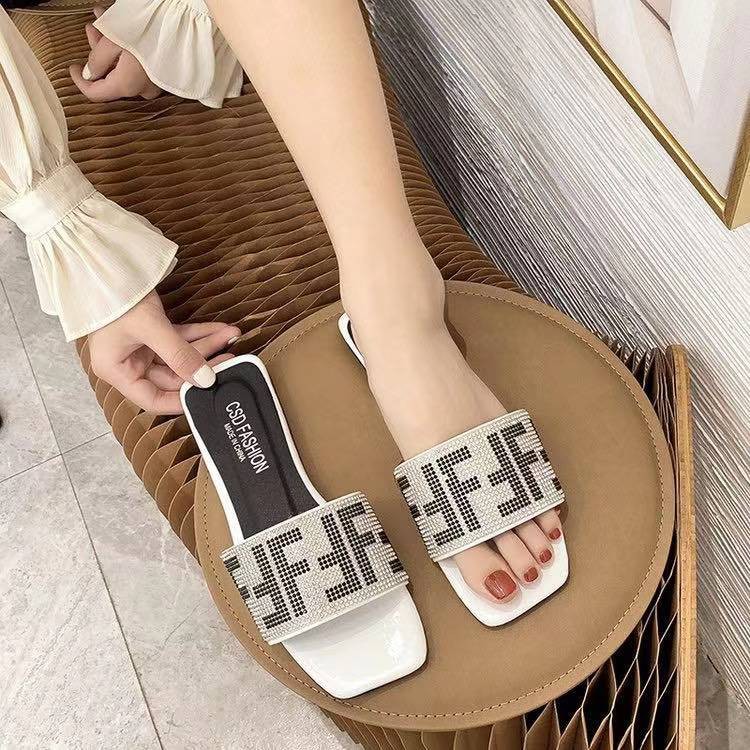 Korean Style Women s Flat Slide Crystal Design Square Toe Sandals Shopee Philippines Very well made.