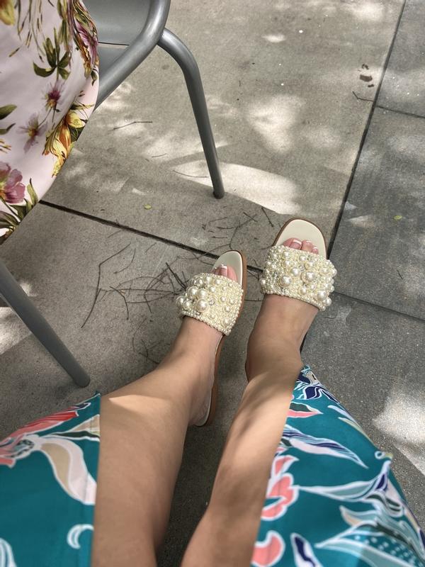 STEVE MADDEN Pearl Embellishment Studded Flat Slide Sandals Black or Blush eBay Very well made.