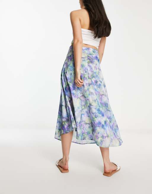 Stradivarius Gonna midi arricciata verde a fiori Very well made.