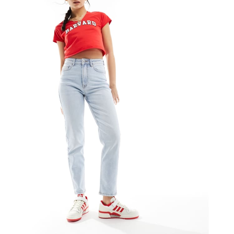 Stradivarius Petite Slim Mom Jeans With Stretch in Washed Blue Very well made.