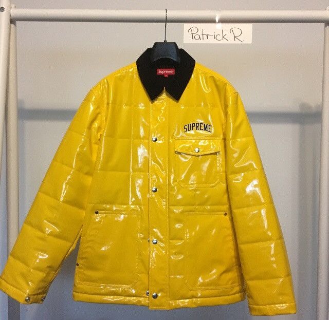 Supreme Quilted Patent Vinyl Work Jacket Yellow Grailed Very well made.