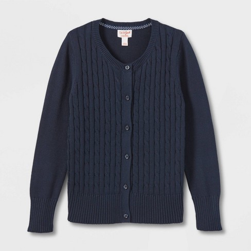Girls Crew Neck Cable Uniform Cardigan Sweater Cat Jack Blue Xl Target Very well made.