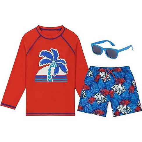 Boys Swim Set With Long Sleeve Rash Guard Swim Shorts And Sunglasses Kids Ages 7 8 Target Very well made.