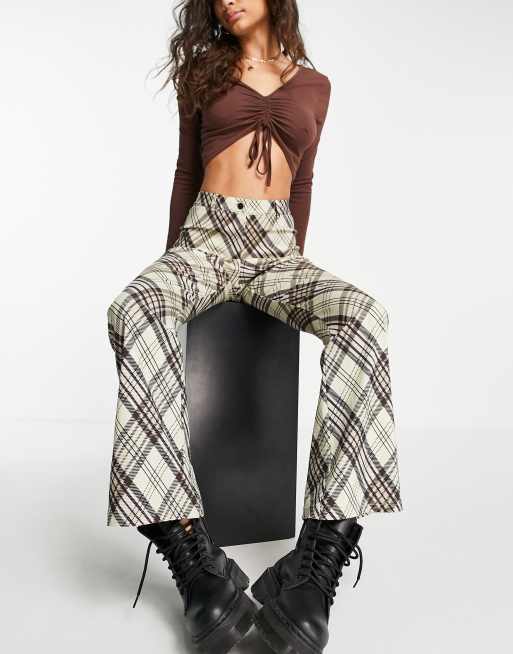 Topshop highwaisted bengaline flared trouser in green check ASOS Very well made.