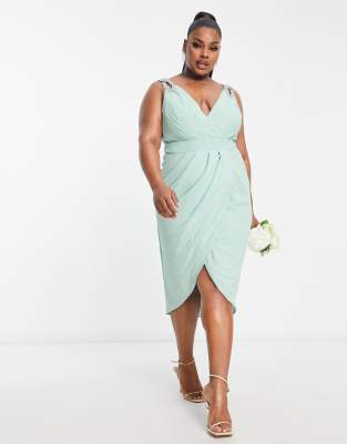 TFNC Plus Bridesmaid chiffon maxi dress with flutter sleeve and embellished waist in grey Very well made.