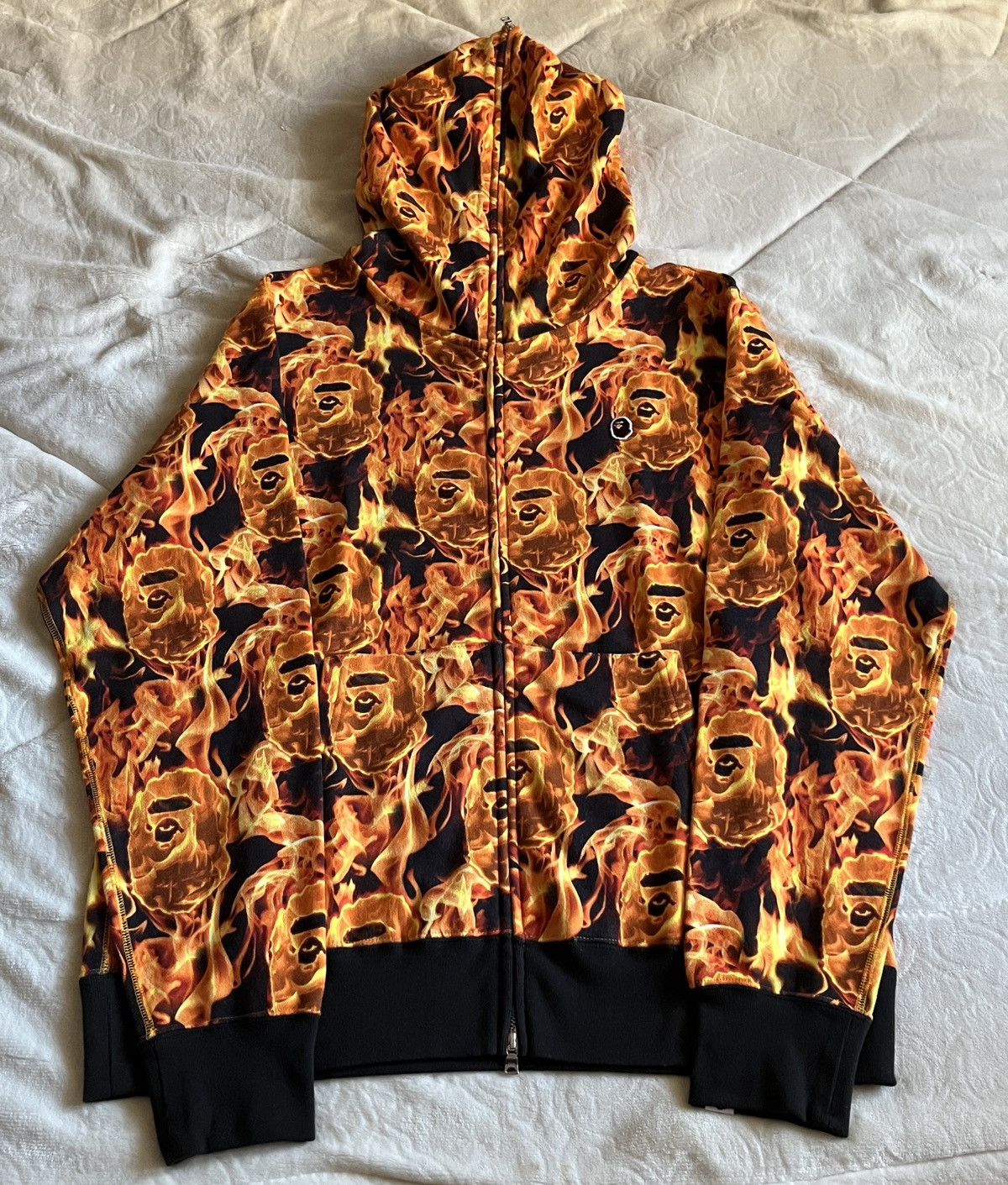 BAPE FLAME fire logo zip hoodie White A Bathing Ape Size M eBay Very well made.