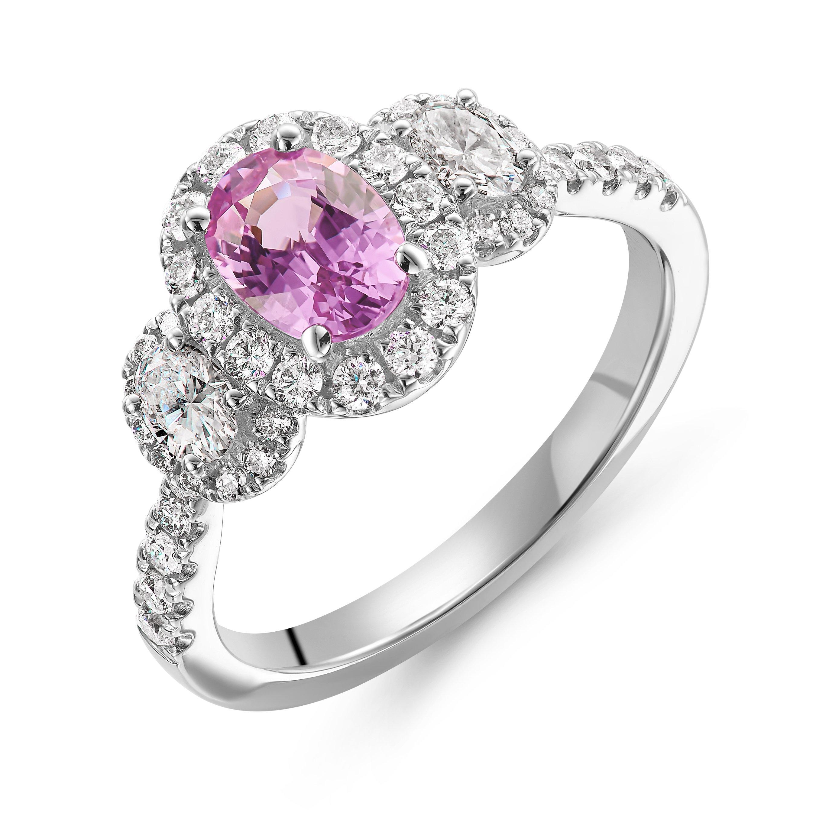 Platinum Diamond Pink Sapphire Oval Cut Ring Very well made.