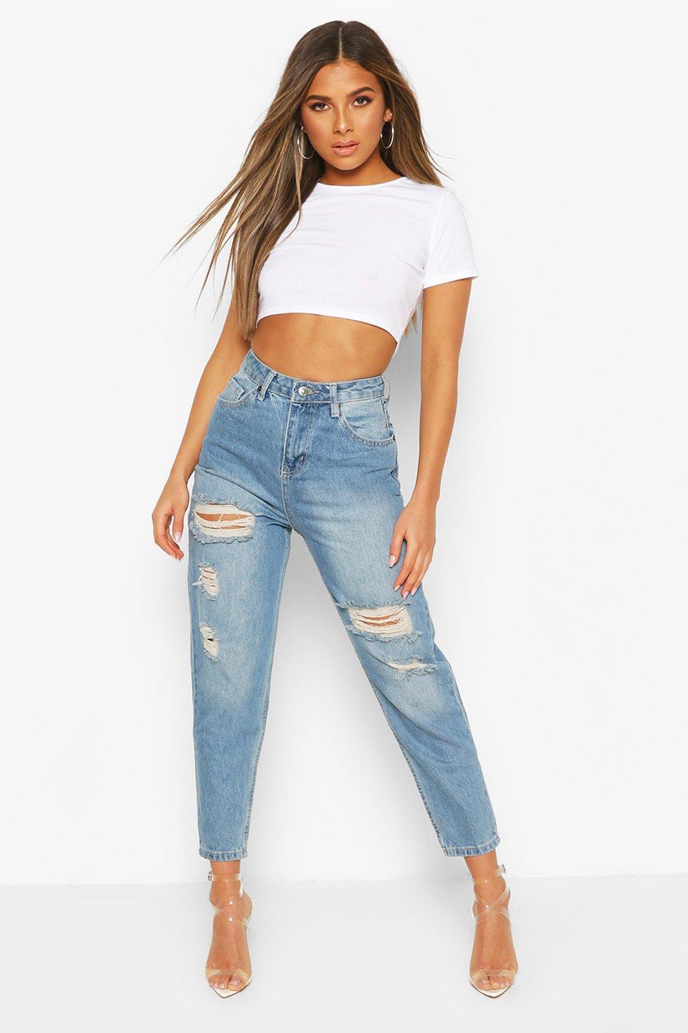 Petite Distressed High Waist Mom Jeans Very well made.