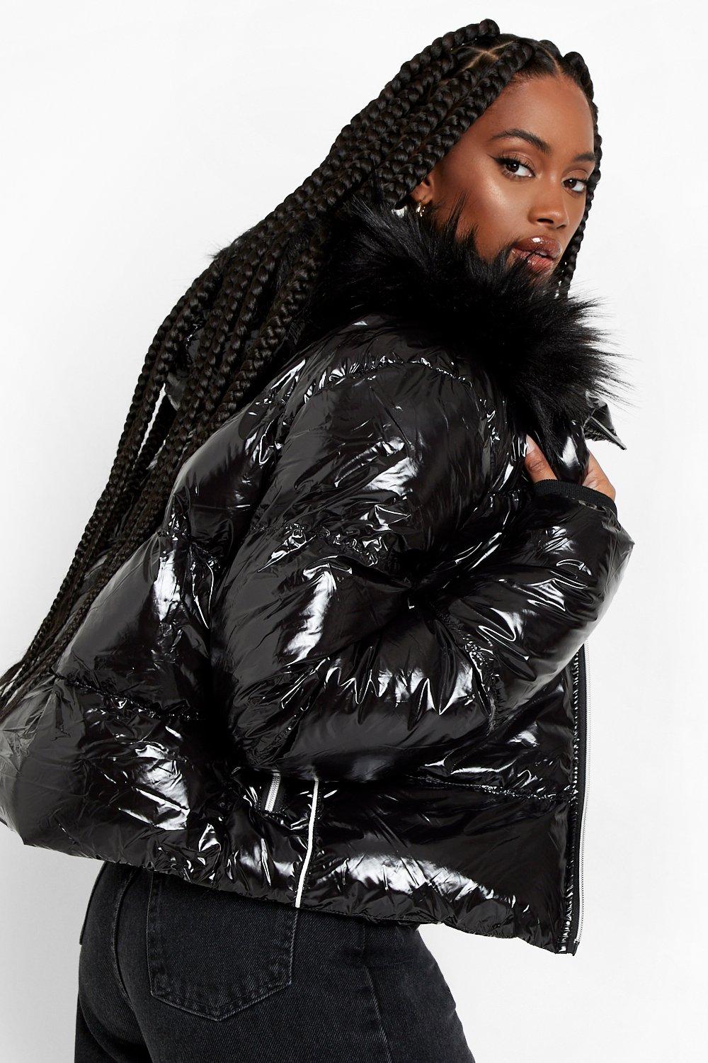 Crop Faux Fur Trim High Shine Puffer boohoo CA Very well made.