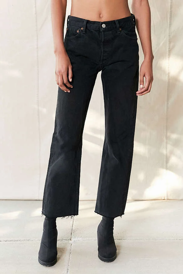 NIUREDLTD Women s Straight Leg Jeans Retro High Rise Button Closure With Zip Fly Frayed Hem Ripped Denim Pants With Pockets Black S Very well made.