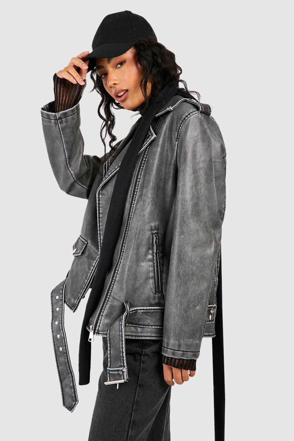 Boohoo Women s Oversized Washed Faux Leather Biker Jacket Black Very well made.