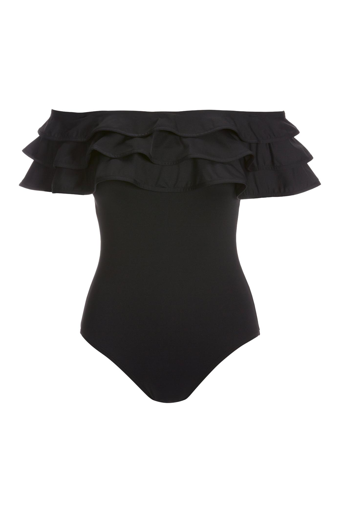 Off The Shoulder Ruffle One Piece Swimsuit Black Very well made.