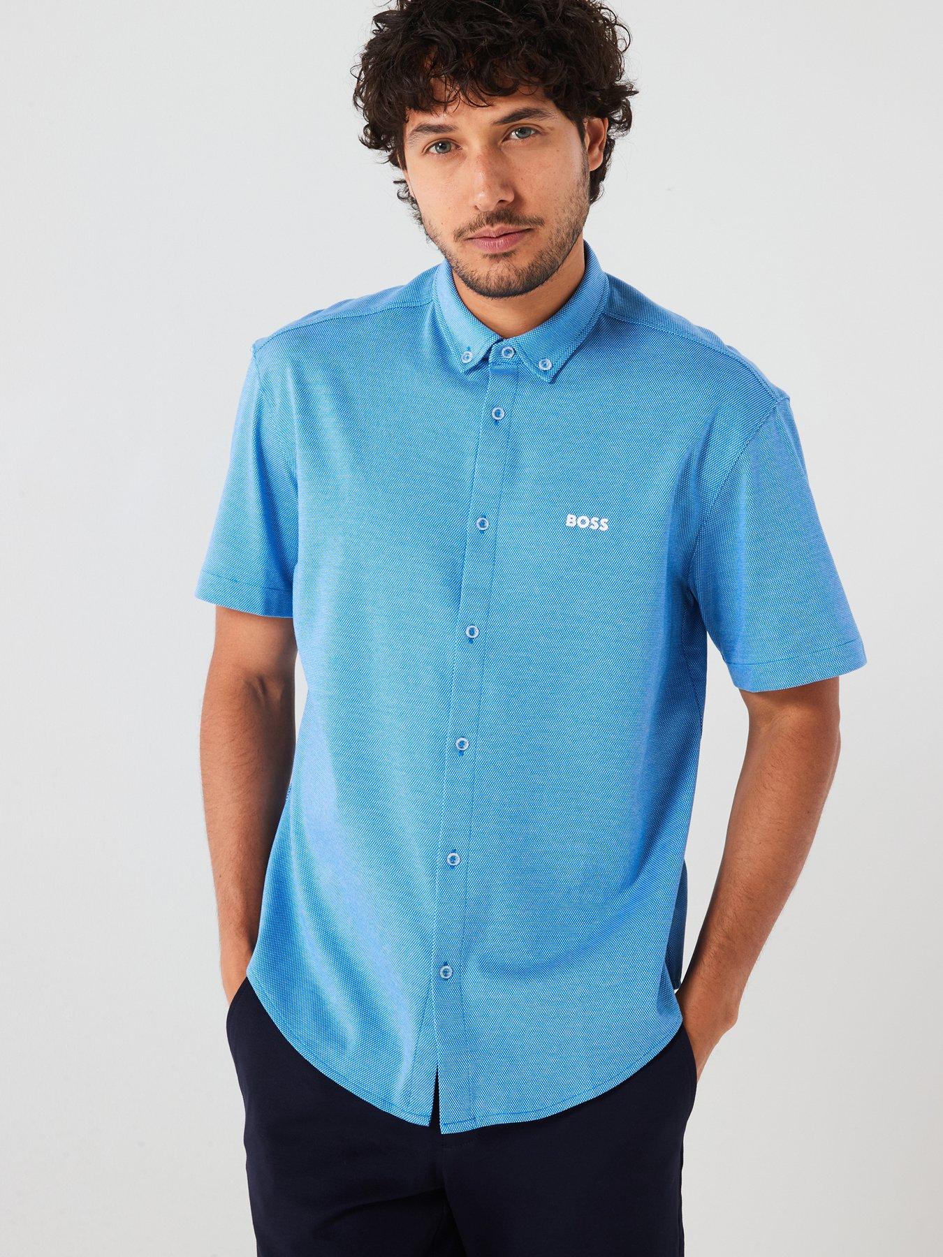 Solid Blue Mens Short Sleeve Button up Shirts Tailored Slim Fit Very well made.