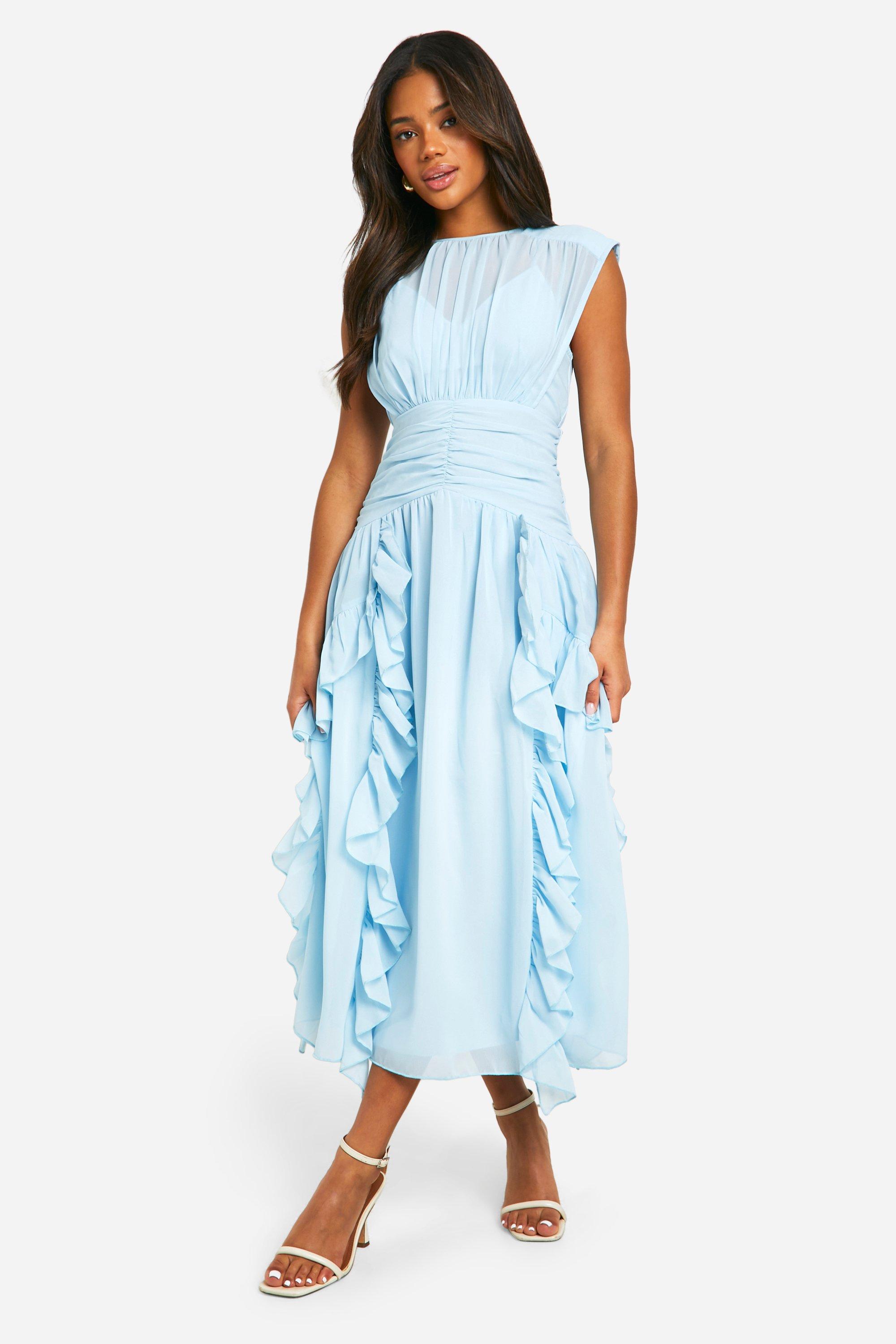 Chiffon Ruched Ruffle Midaxi Dress boohoo Very well made.