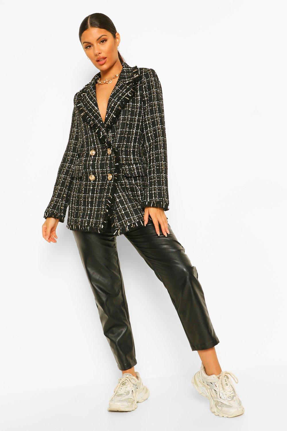Metallic Checked Frayed Hem Blazer boohoo UK Very well made.