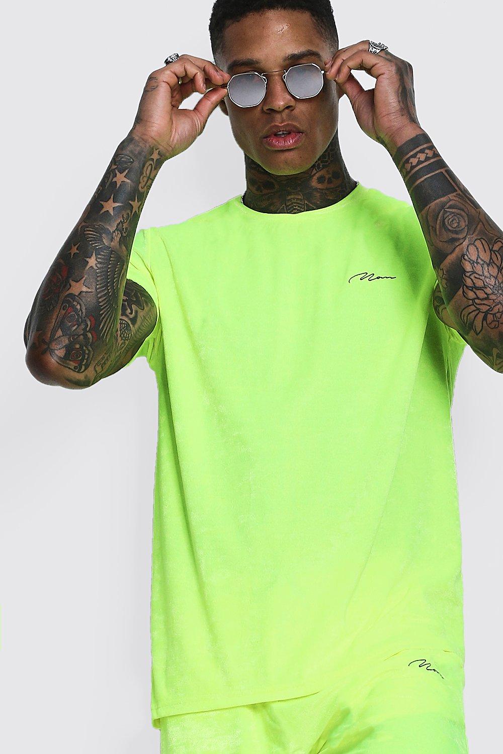 Man Signature Neon Velour T Shirt Short Set boohoo Very well made.
