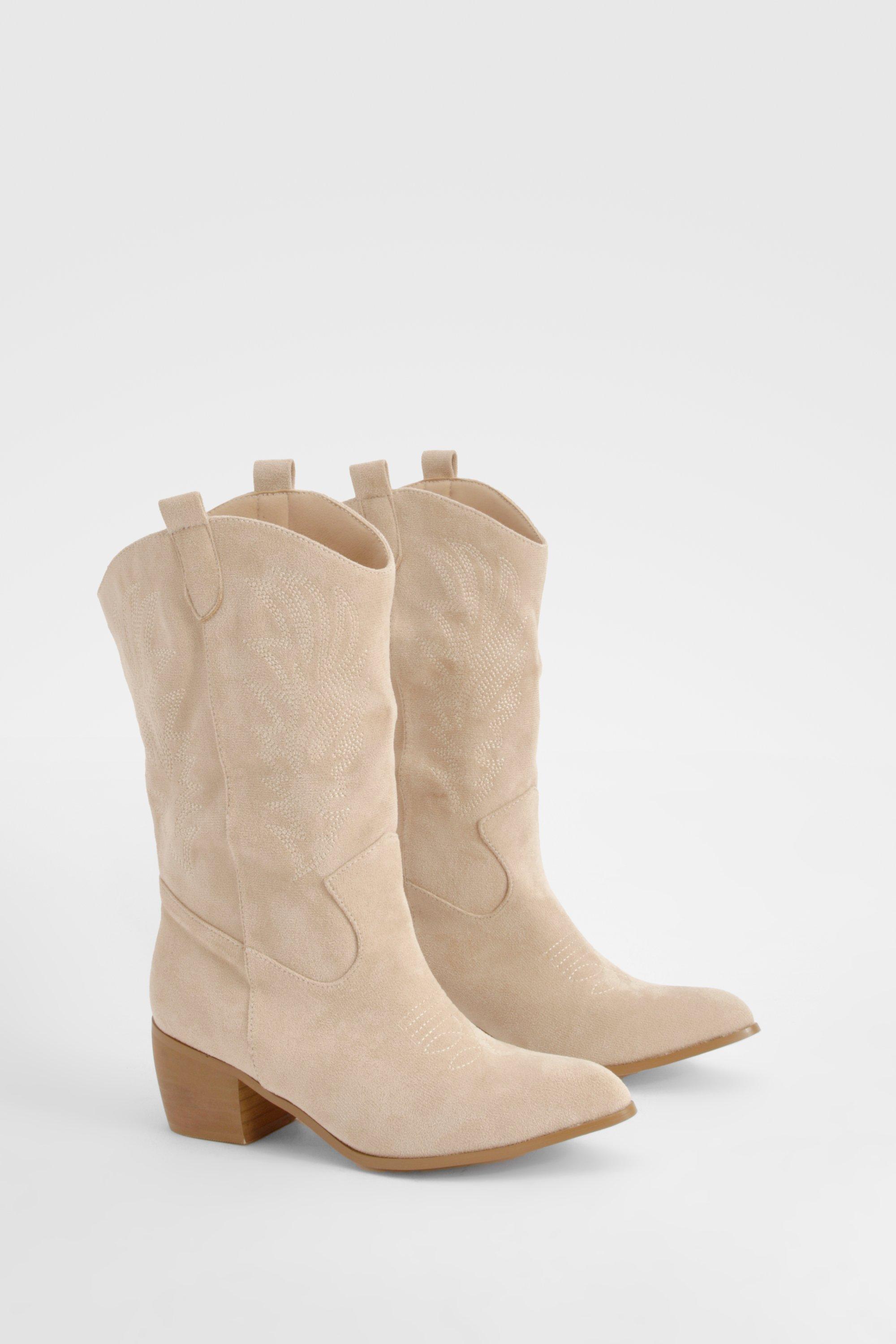 Wide Fit Faux Suede Tab Detail Ankle Cowboy Western Boots boohoo Very well made.