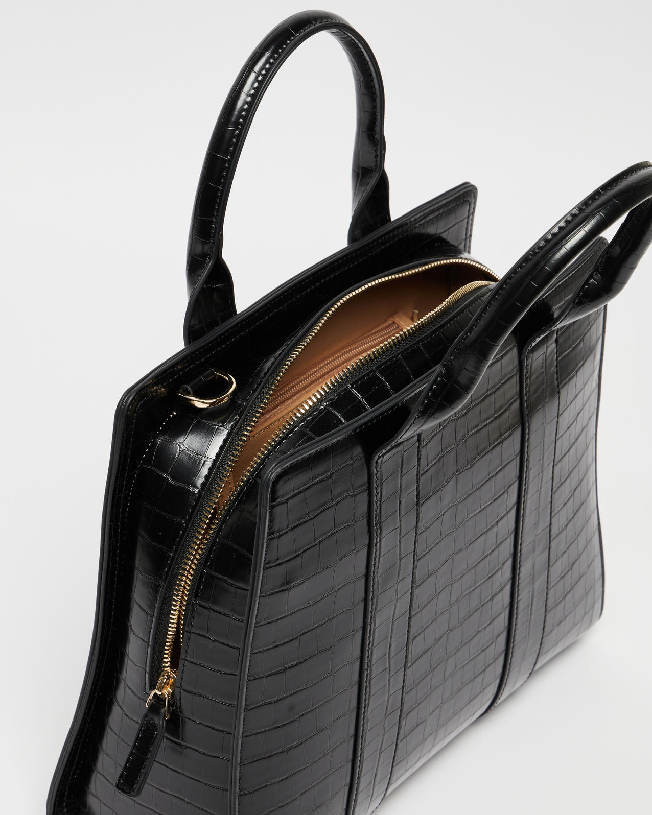 Borsa grande a mano nera in similpelle stampa cocco con tracolla piu lunga Very well made.
