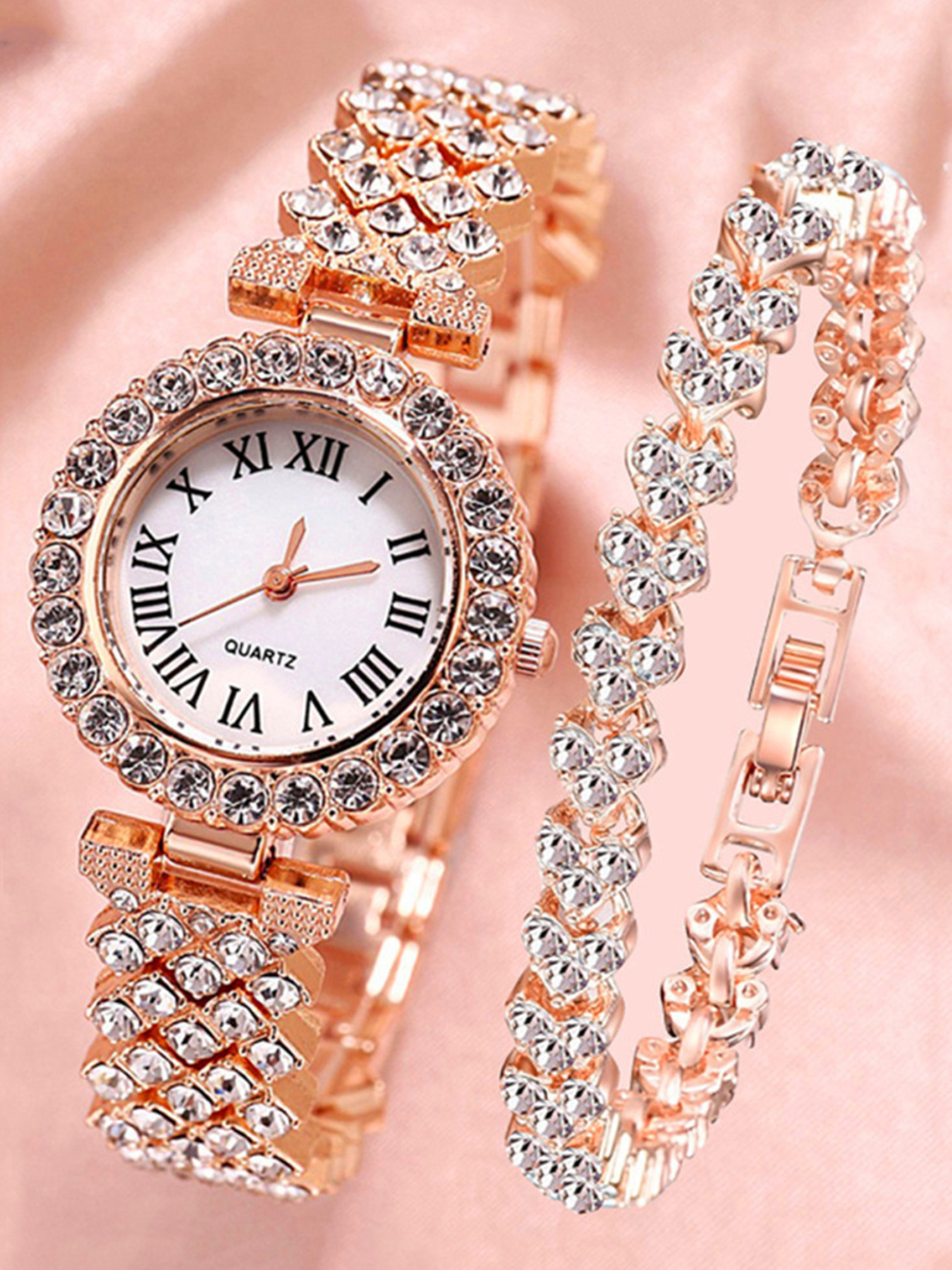 2pcs Ladies Fashion Trend Starry Sky Roman Numerals Luxury Light Luxury Full Diamond Bracelet Quartz Watch Love Heart Bracelet Set Shopee Malaysia Very well made.
