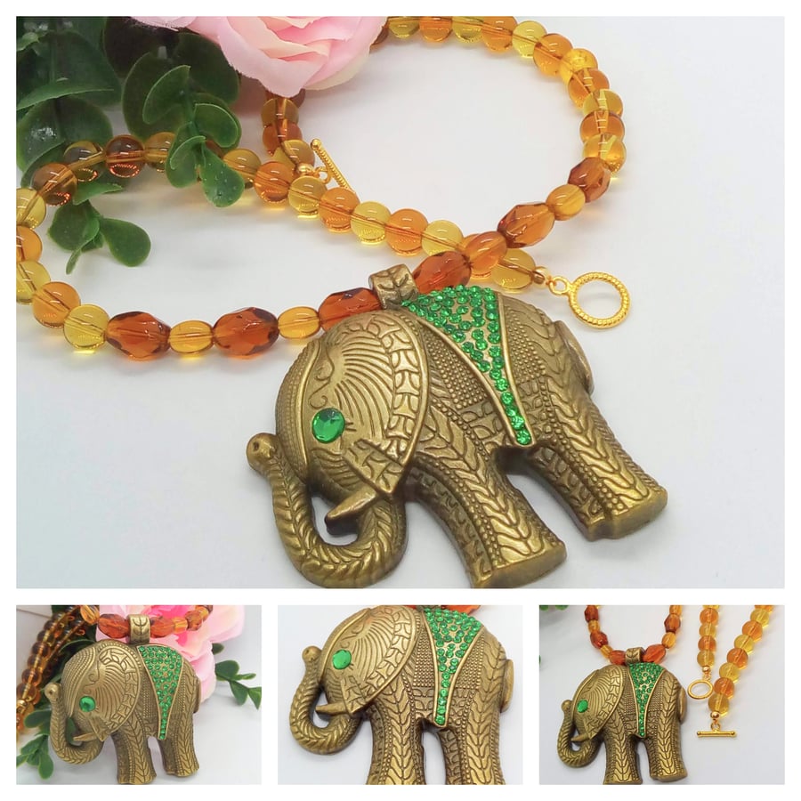 Bronze Elephant Pendant with Green Rhinestones Folksy Very well made.