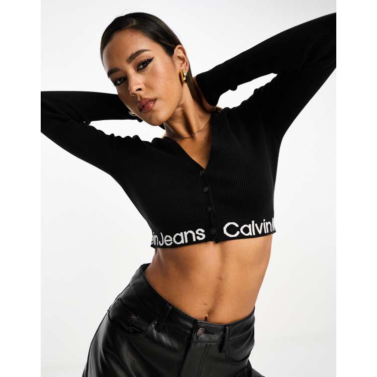 Calvin Klein Jeans logo intarsia sweater cardigan in black ASOS Very well made.