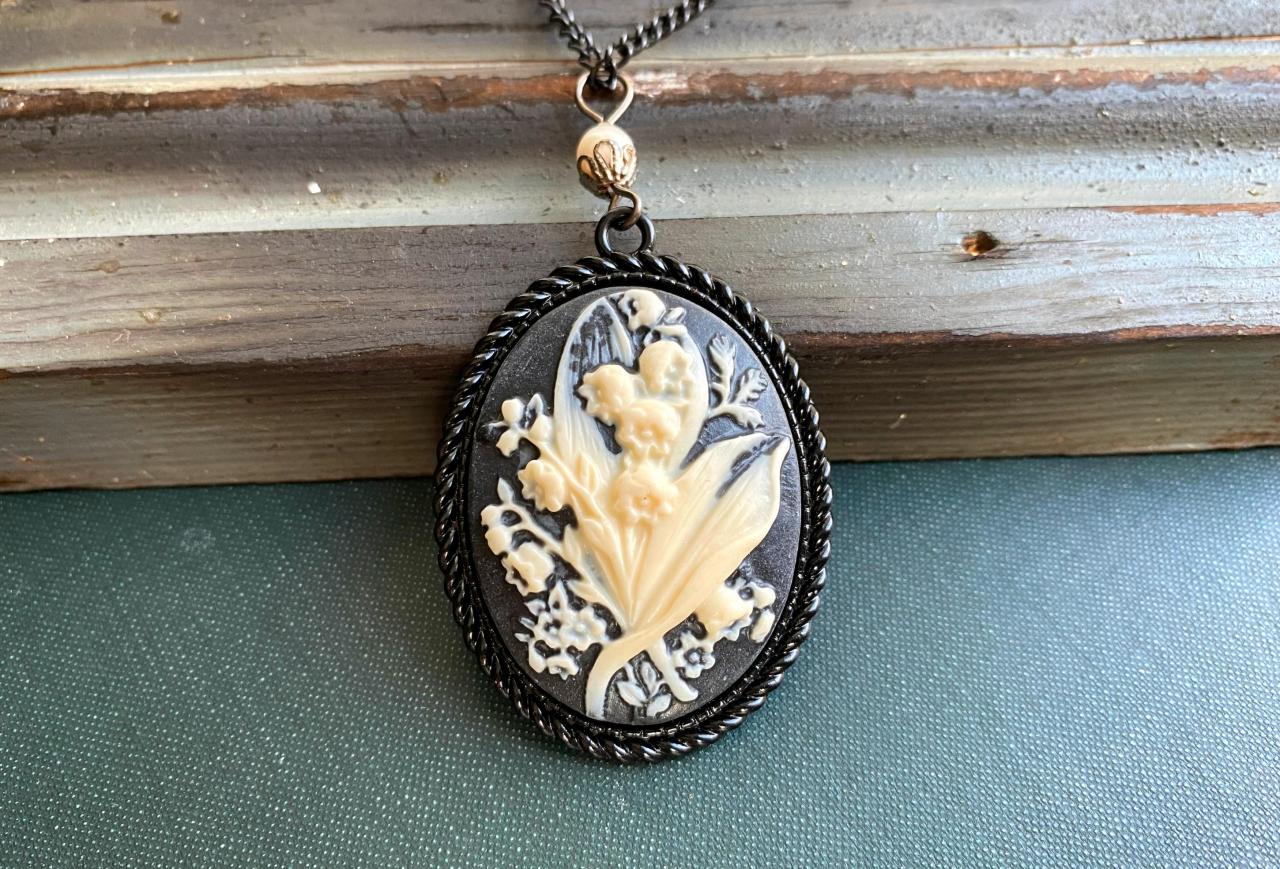 Black And White Lily Of The Valley Cameo Necklace Vintage Necklace Traditional Cameo Victorian Je on Luulla Very well made.