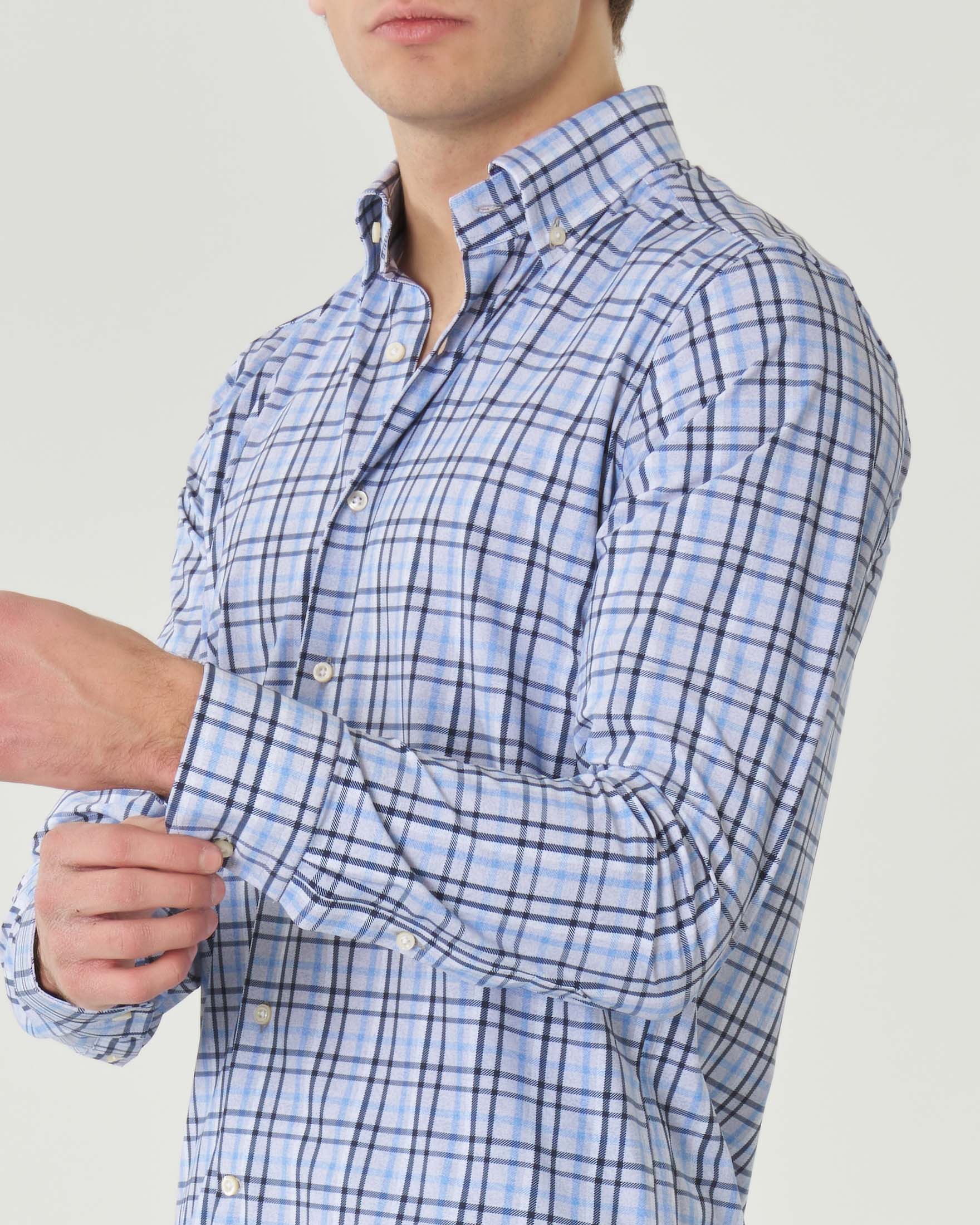 Camicia uomo a quadretti azzurro Eterna Slim Fit Cotone Premium Twill No stiro Saldi Very well made.