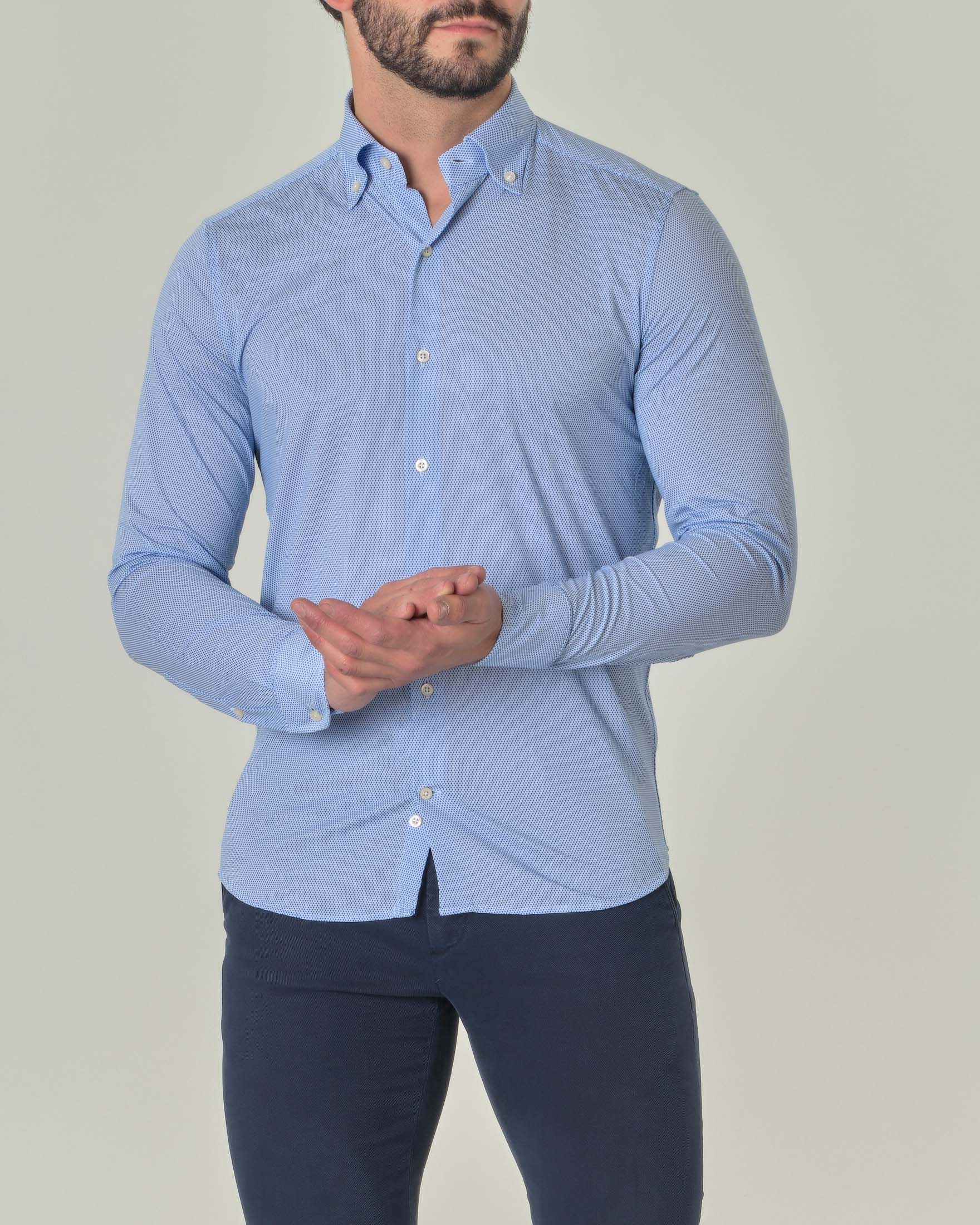 Camicia azzurra micro fantasia in tessuto tecnico con collo button down Very well made.